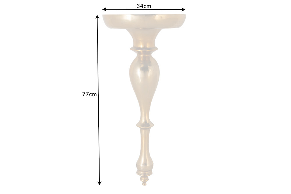 De elegante wandconsole SCALA is een eyecatcher voor iedere ruimte! Elk exemplaar is met de hand gemaakt en heeft een speelse basisvorm. De wanddecoratie in goud is geschikt als decoratief woonaccessoire of als plank voor kostbare vazen, zeldzame verzamelobjecten en decoratieve kunstwerken. Bij de productie van de wandconsole wordt met de hand een hoogwaardige metaal-aluminiumlegering gevormd. Dit betekent dat elk stuk uniek is en elke sfeer perfectioneert.