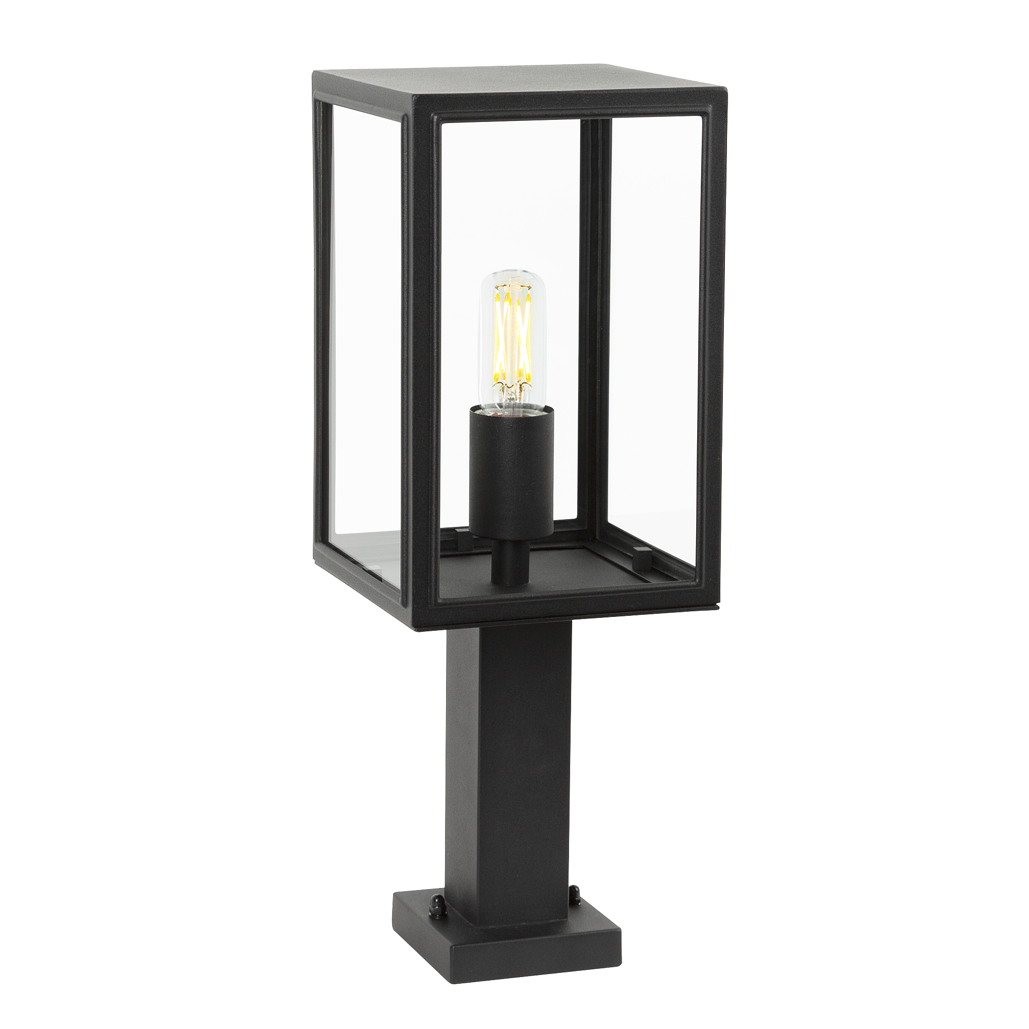 In deze combinatie wordt de lamp geleverd met een dag & nacht sensor lichtbron. Deze intelligente LED lichtbron is voorzien van onzichtbare schemersensor welke in de fitting is bevestigd die er voor zorgen dat het licht inschakelt bij intreding van schemer en weer uitschakelt zodra het weer licht wordt. Gemak dient de mens! De Soho is een van dé paradepaardjes uit de populaire strakke buitenlampen serie van Nostalux. Naast de Soho wandlamp is er nu ook de buitenlamp staand zwart Soho sokkel. Deze stijlvolle tuinlamp is zeer geschikt voor de modern vormgegeven tuin. De heldere beglazing zorgt ervoor dat de lichtbron goed zichtbaar is en het licht zich 's avonds uitstekend verspreidt. Afmetingen van de lamp zijn 45 cm hoog en 16,5 cm breed/diep. De voet heeft een afmeting van 9,3 x 9,3 cm. De Soho sokkel is voorzien van een E27 lamphouder, dit maakt de sokkellamp geschikt voor diverse lichtbronnen waaronder natuurlijk LED.Deze prachtige stijlvolle staande buitenverlichting is ook zeer goed toepasbaar als verlichting op een gemetselde kolom of gestucte pilaar. Gebruik voor een gemakkelijke montage in de grond de verankeringspaal spie vierkant artikelnummer: 5817.