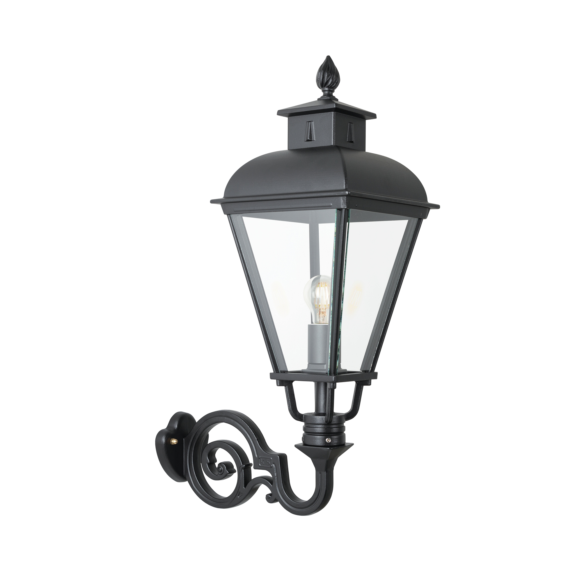 De Vondel A is een klassieke stijl buitenlamp voor aan een muur, wand of gevel. De Vondel A wandlamp buiten heeft een sierlijke steun met mooie ronde vormen. Deze ronde vormen komen zien we aan de bovenkant terug van de Vondel lantaarn kap, wat bijdraagt aan een prachtig geheel. De buitenlamp Vondel A is een harmonieuze muurlamp welke niet zal misstaan als eyecatcher naast bijvoorbeeld de voordeur. De populaire kleur zwart van de muurlamp Vondel A maakt het bovendien makkelijk om te combineren met bestaande buitenverlichting.De Vondel A is gemaakt van aluminium en is afgewerkt met een meerlaagse, weersbestendige poedercoating. De muurlamp voor buiten heeft vensters van glas en is uitgerust met een E27 fitting. Het is mogelijk om in deze klassieke buitenlamp een moderne, energiezuinige led lichtbron te plaatsen en daarmee te besparen op de energierekening!De Vondel serie heeft meerdere variaties. Kijk hiervoor bij de bijpassende producten en kies de buitenlamp die bij je past.