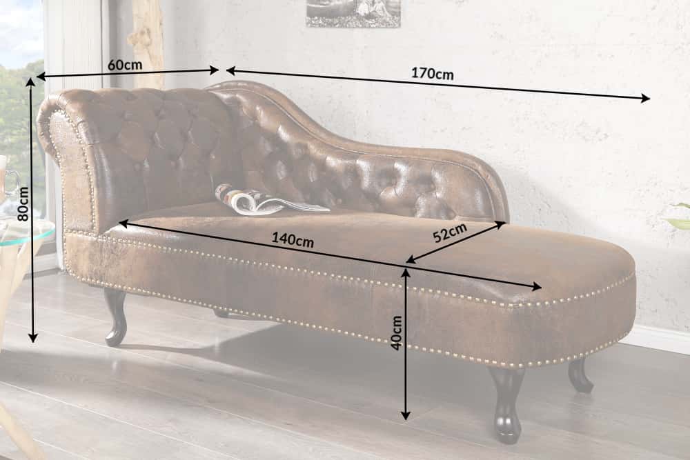 You're viewing: Chesterfield chaise longue 170cm antiekbruin met knoopstiksel en klinknagels – 21628 531.58