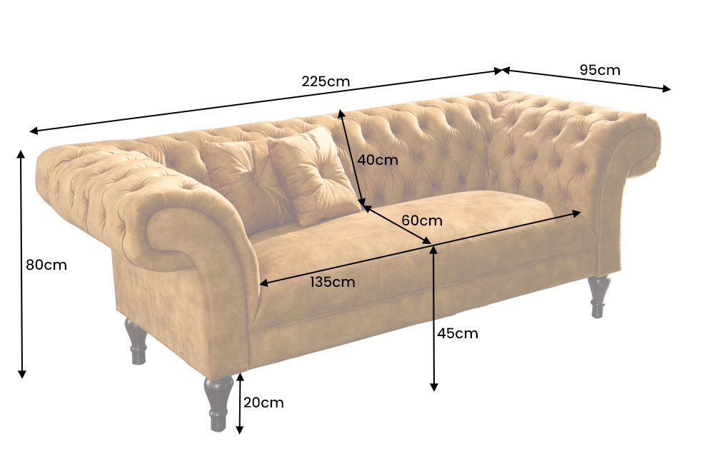 Chesterfield Design 3-zits loungebank PARIS 225cm mosterdgeel fluweel 3-zits inclusief kussens – 41249