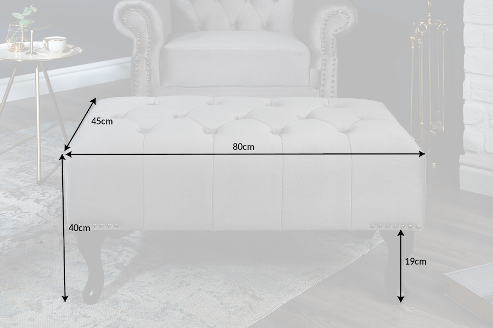 Chesterfield voetenbank 80cm zilvergrijs met knoopstiksels en klinknagels – 39850