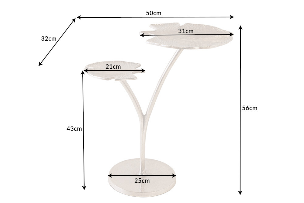 Decoratieve bijzettafel GINKGO LEAFS 50cm zilver handgemaakt metaal – 41788