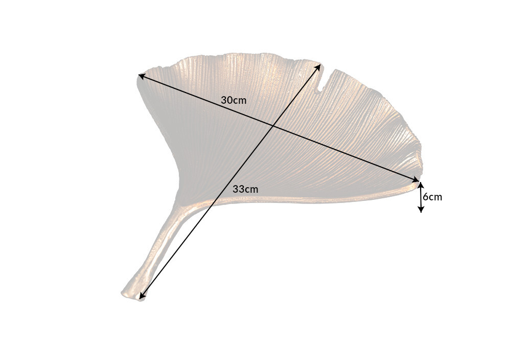 Verheug u nu op een bijzonder stijlvolle tafeldecoratie! De gouden GINKGO schaal is ontworpen in de vorm van een delicaat blad en wordt meteen een hoogtepunt op elke eettafel, dressoir of wandplank. De schaal is ideaal om uw bezoekers en gasten fruit, chocolaatjes of gebak aan te bieden, maar het accessoire is ook erg populair als opbergmogelijkheid voor sieraden.