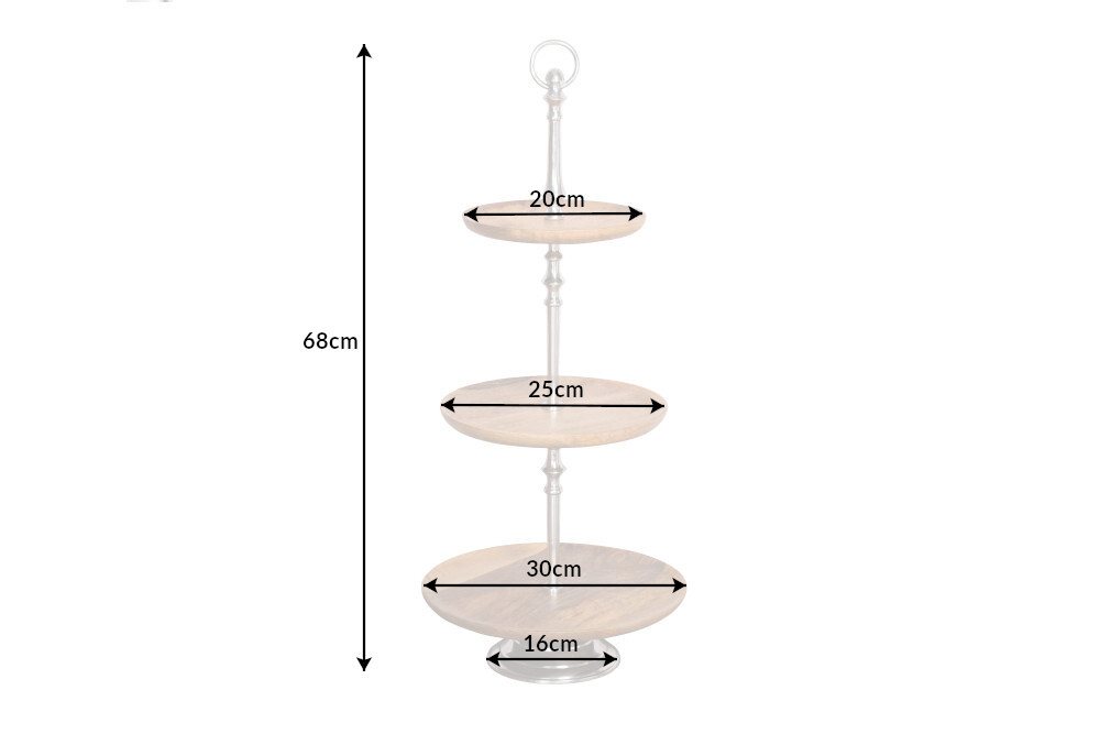 Decoratieve taartschaal PURE NATURE 68cm zilver mangohout handgemaakt drie niveaus – 42734