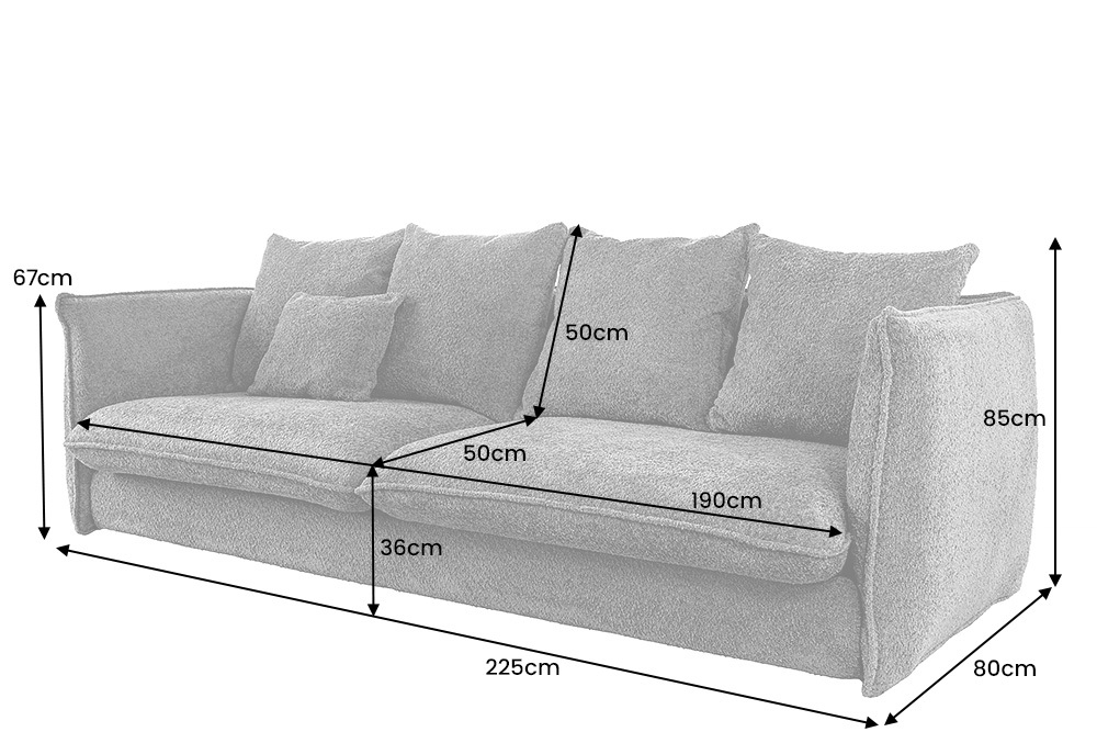 Design 3-zitsbank COCOONING 225cm Boucle grijs – 43440