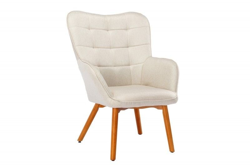 Hier kunt u het zich echt comfortabel maken! De comfortabele SCANDINAVIA fauteuil combineert het hoogste zitcomfort met een fris, Scandinavisch design . De hoogwaardig gevoerde zitschaal heeft comfortabele armleuningen en decoratieve stiksels in het rugleuninggedeelte. Het gestructureerde bekledingsmateriaal in beige zorgt bovendien voor de kwaliteit van de stoel op het gebied van gevoel en vormt een harmonieus contrast met de poten van massief rubberhout .