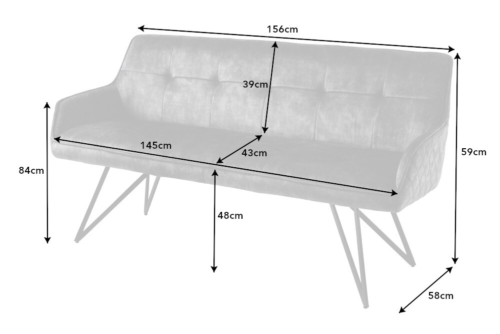 Design bank EUPHORIA 160cm donkergrijs fluweel retrostijl decoratief quilten haarspeldpoten metalen poten armleuningen – 43127