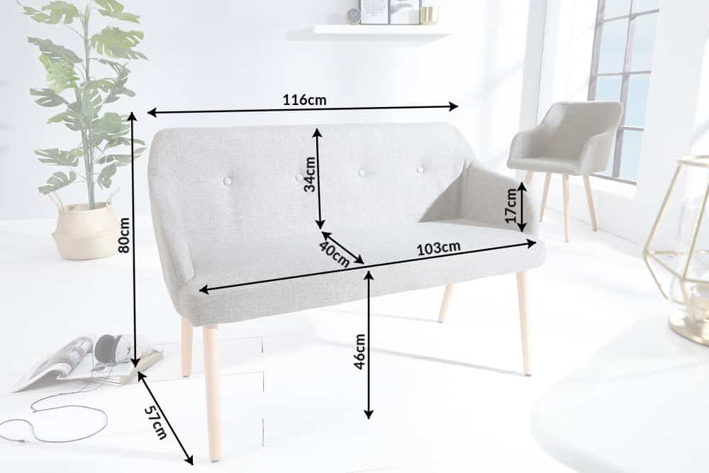 Design bank SCANDINAVIA MEESTERSTUK 116cm lichtgrijs beukenhout met armleuning – 37925