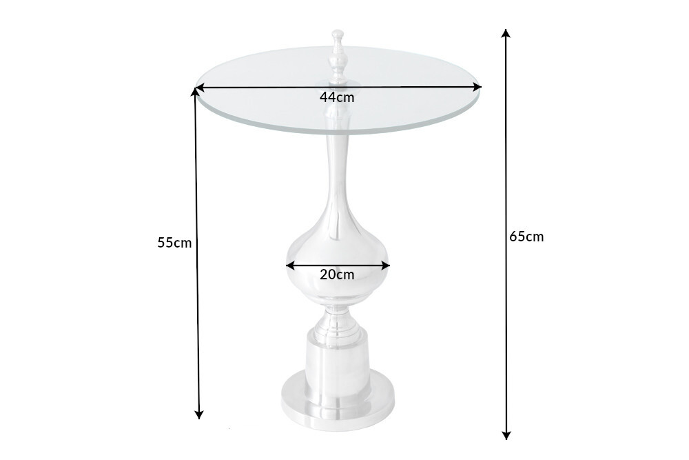 Design bijzettafel ABSTRACT 45cm zilver metaal chroom handgemaakt glazen blad rond – 42227