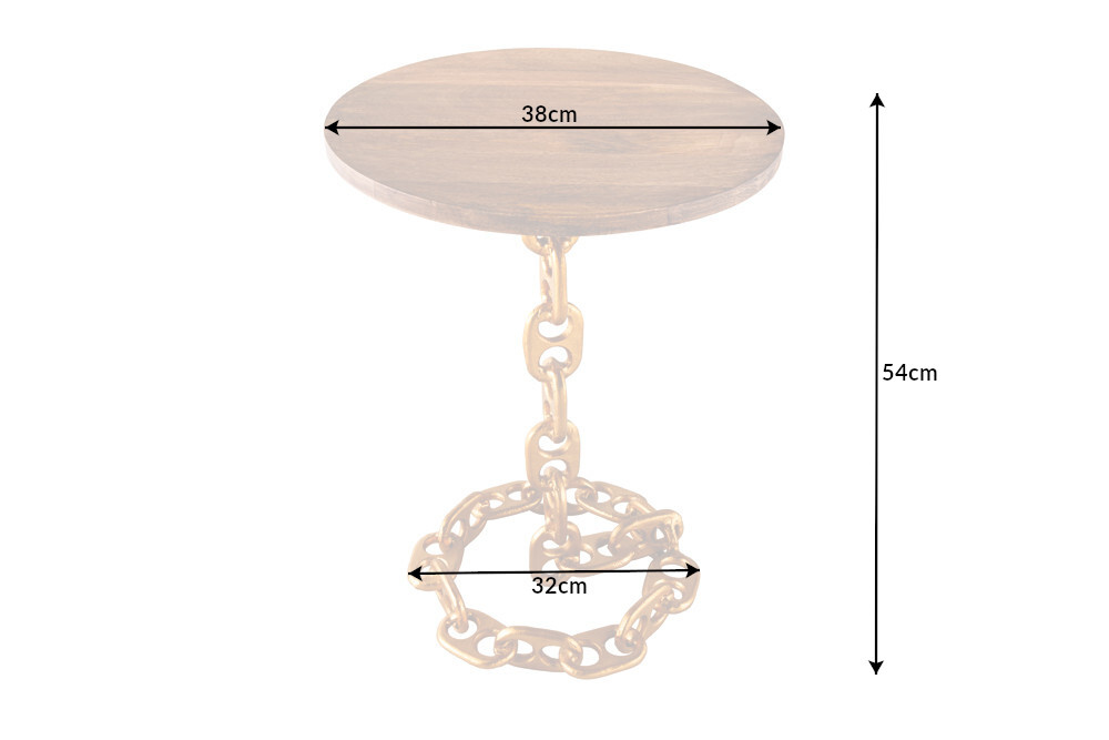 Design bijzettafel CHAINS 40cm goud mangohout handgemaakt metalen rond kettingframe – 42233