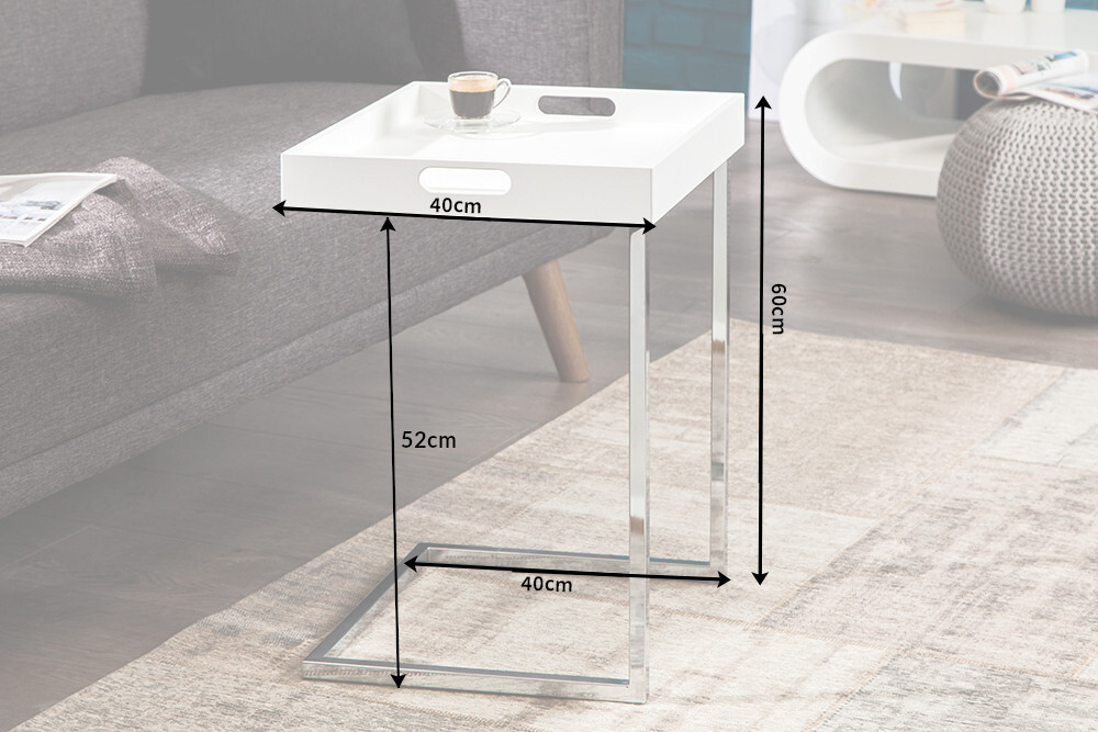 Design bijzettafel CIANO 40cm wit chroom dienbladtafel – 14246