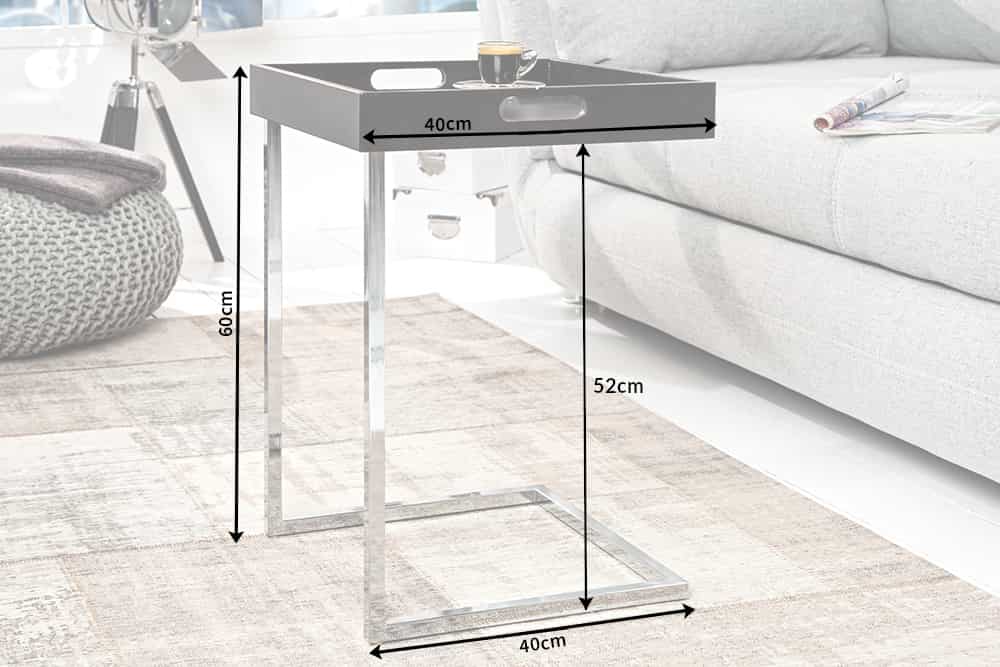 Design bijzettafel CIANO 40cm zwart chroom dienbladtafel – 14245