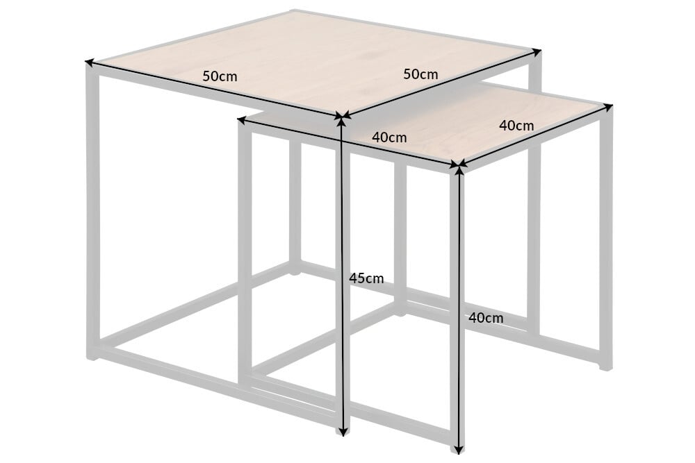 Het tijdloze design van de tafels, die onder elkaar geschoven kunnen worden, laat zich makkelijk combineren met een grote verscheidenheid aan meubelen en stijlen. De tafels staan niet alleen mooi als bijzettafeltjes naast je bank, maar kunnen bijvoorbeeld ook gebruikt worden als moderne nachtkastjes. Onze tip: Combineer de tafels met een lamp of een plank in industrieel design om een harmonieus totaalconcept te creëren.
