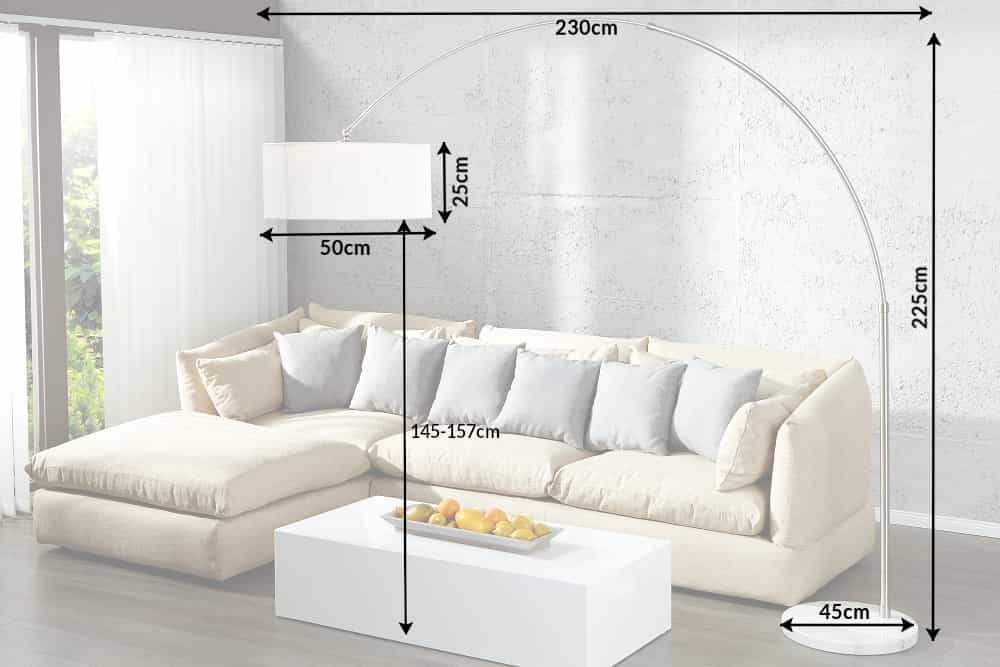 Design booglamp EXTENSO 230cm witte vloerlamp met wit marmeren voet – 20140