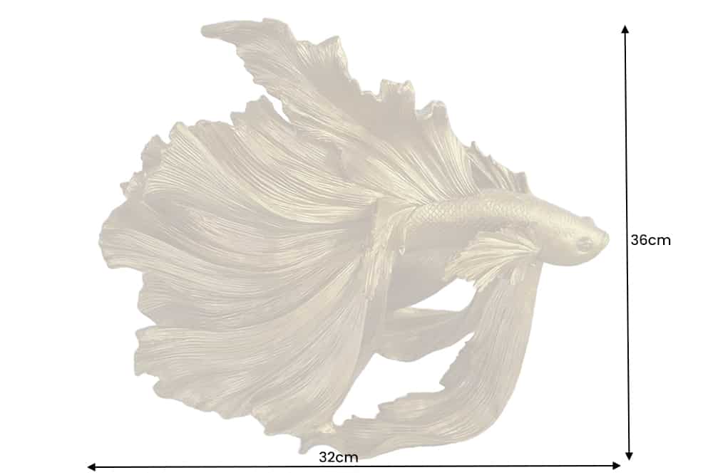 Wij brengen de onderwaterwereld bij u thuis! Het decoratieve object CROWNTAIL in de vorm van een Siamese vechtvis is een absoluut hoogtepunt – of het nu in de woonkamer, hal of badkamer is. Dankzij zijn pompeuze uitstraling is de decoratieve figuur een exclusieve blikvanger voor een extravagante woonsfeer. De ondersteunende vin laat de gouden visdecoratie zweven – bijna alsof de majestueuze vechtvissen door je woonkamer zwemmen! Dankzij het gedetailleerde ontwerp van de visdecoratie zal het gouden beeld een absolute blikvanger in uw huis zijn.