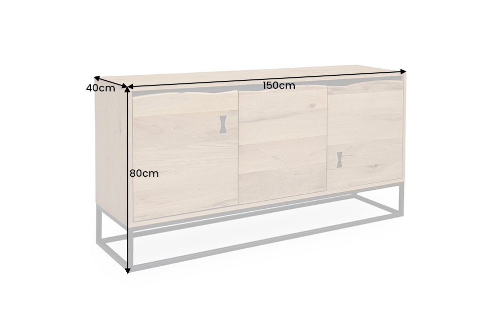 Het massieve ijzeren frame in de kleur zwart zorgt voor stabiliteit en onderstreept de industriële uitstraling van de kast. Bijzonder detail zijn de organisch gevormde boomranden van de deuren, waardoor er een kier ontstaat om de kast te openen. Onze interieurtip: Combineer het dressoir met een bijpassende salontafel en creëer een harmonieus inrichtingsconcept!