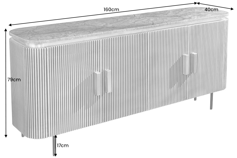 Maar niet alleen het design van het dressoir is een echt hoogtepunt. Open de deuren en vind voldoende opbergruimte in het bord. Hier kun je al je woonspullen netjes opbergen. Of het nu gaat om porselein, glazen, boeken of accessoires – het dressoir kan naar wens worden gebruikt. Onze tip: Combineer het dressoir met andere meubelstukken en accessoires van messing – zo creëer je gemakkelijk een harmonieus totaalconcept in je woonruimte.
