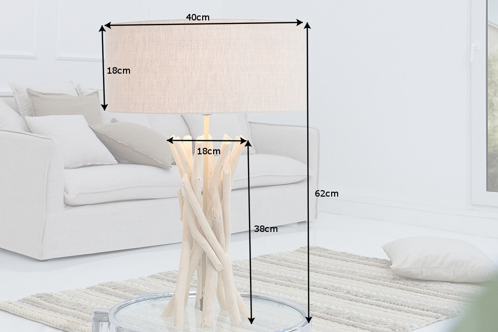 Design drijfhout tafellamp WILD NATURE 62cm zand met linnen kap – 38154