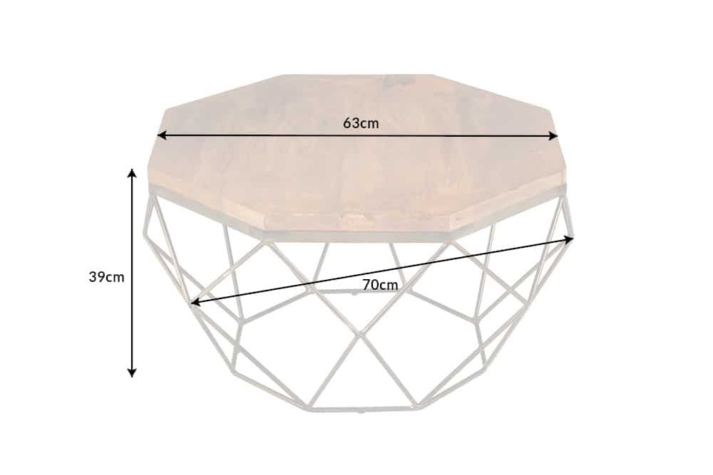 Design salontafel DIAMOND 70cm natuurlijk mangohout massief messing ijzeren frame – 40391