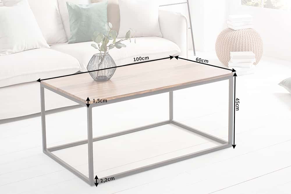 Design salontafel ELEMENTS 100cm Sheesham steenafwerking ijzeren frame zwart mat massief hout – 38604