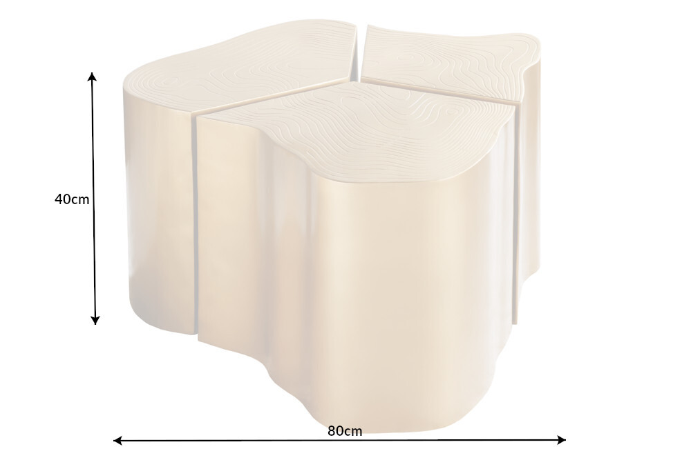 De ORGANIC salontafel overtuigt door zijn moderne uitstraling en brengt met zijn boomstamlook de natuur rechtstreeks in uw woonkamer. Een bijzonder hoogtepunt van de messingkleurige bijzettafel zijn de gefreesde jaarringen op het tafelblad. Dankzij de verdeling van de tafel in drie delen is het meubelstuk variabel te positioneren. De organische vorm van de salontafel onderstreept het natuurlijke design en zorgt voor een unieke sfeer in je huis!