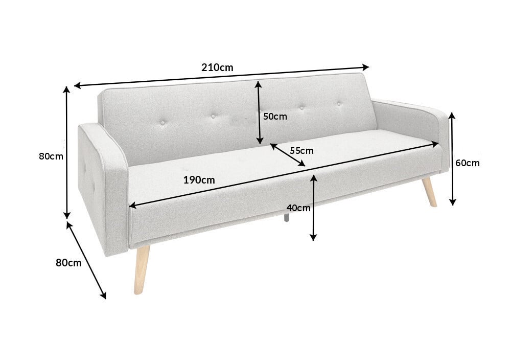De rugleuning van de functionele bank is op drie niveaus verstelbaar en zorgt zo voor optimaal zitcomfort. De decoratieve knopen zijn bekleed met stof en maken de zijsteunen en rugleuning tot een blikvanger. De moderne buitenkant wordt afgerond door de stevige berkenpoten. Slaapbanken zijn zowel een comfortabel bed als een stijlvolle bank in één. Comfortabel zitten is net zo goed mogelijk als een ontspannen nachtrust. De hoogwaardige stof en de perfecte afwerking zorgen bovendien voor een lange levensduur.