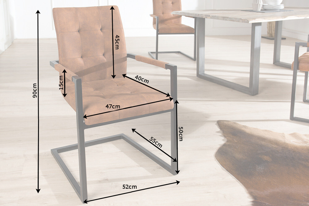 Design sledestoel OXFORD vintage bruin met armleuning ijzeren frame – 36959