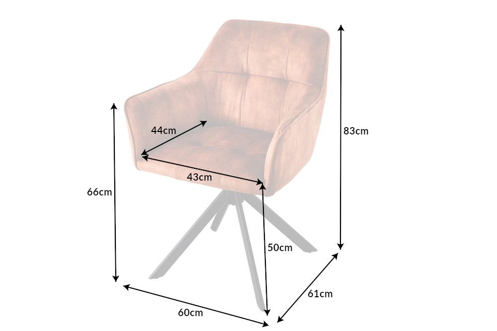 Design stoel LOFT koperbruin fluweel draaibaar zwart metalen frame met armleuning – 42394