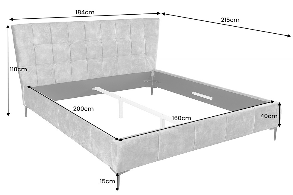 Ontdek ons exclusieve blauwgroene gestoffeerde bed: een waar meesterwerk van elegantie en comfort dat uw nachten rustgevend zal maken. Dit hoogwaardige tweepersoonsbed is niet alleen een slaapmeubel, maar ook een designstatement voor je slaapkamer! Onze exclusieve benzineversie geeft dit bed een tijdloze schoonheid. Het gehele bedframe is bedekt met een luxe fluwelen hoes die niet alleen prettig aanvoelt, maar ook visueel indrukwekkend is. De stevige metalen poten in de kleur zwart zorgen voor betrouwbare stabiliteit en geven het bed een modern tintje.
