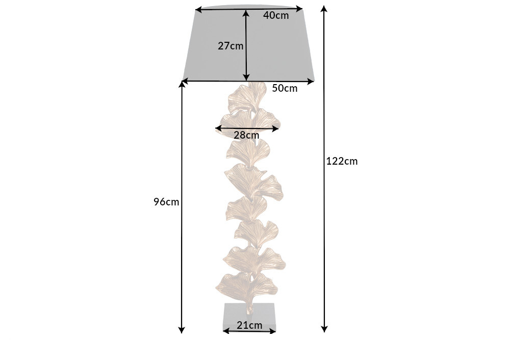 Bent u op zoek naar een decoratieve lamp voor uw glamoureuze huis? Onze stijlvolle GINKGO vloerlamp brengt gezellig licht in uw vier muren! De grote, ronde zwarte stoffen kap rust op een sculpturale lampvoet die veel gouden ginkgobladeren combineert met een massieve marmeren voet . De vloerlamp is perfect voor in de woon-, slaapkamer of leeshoek!