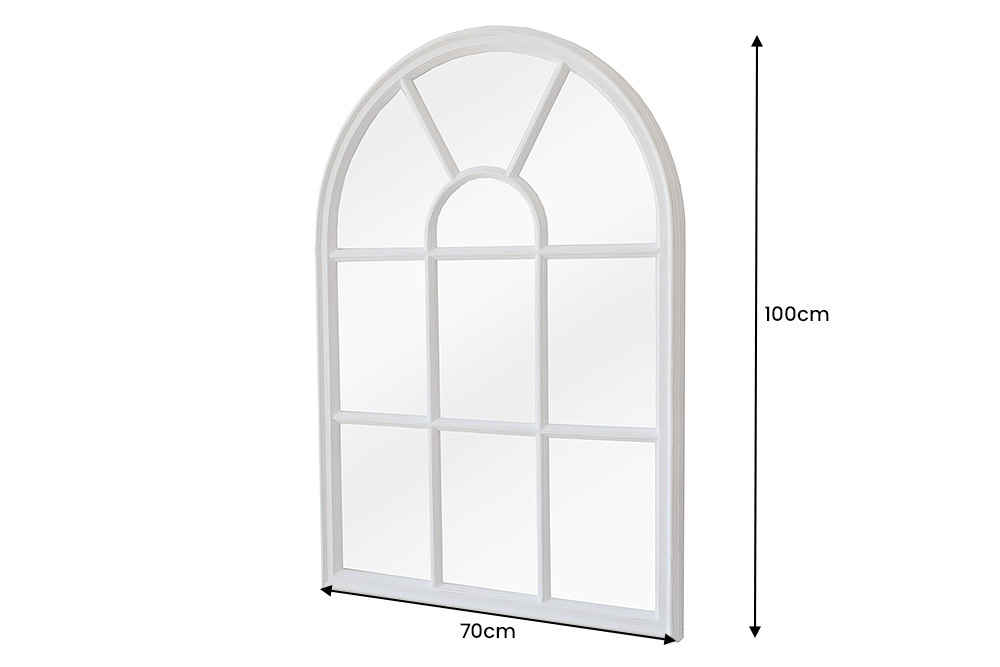 Geef je huis een echt juweel met de fascinerende CASTILLO wandspiegel! Deze geweldige spiegel heeft een witte omlijsting met raamlook. Het indrukwekkende ontwerp voegt extra diepte en helderheid toe aan elke kamer. Ontdek een eigentijdse combinatie van moderniteit en klassieke landhuisstijl met de CASTILLO wandspiegel. Het tijdloze wit geeft deze handgemaakte spiegel een modern tintje dat uw kamer harmonieus verfraait. De ronde boogwandspiegel is met de hand gemaakt met oog voor detail om een uniek accent aan uw huis toe te voegen. Ervaar het zelf!