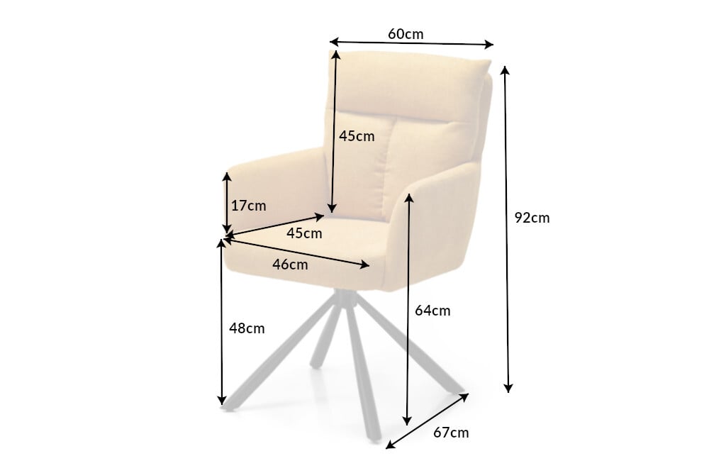 Deze indrukwekkende armleuningstoel trekt meteen ieders aandacht. De comfortabele 360° draaibare zitschaal heeft een hoogwaardige Bonell-veerkern in de zitting en een comfortabel gewatteerde rugleuning, die bovendien decoratief is verfijnd met een decoratieve T-vormige naad. Tenslotte ronden de zwarte metalen poten in retro-look het buitengewone design van de stoel af.