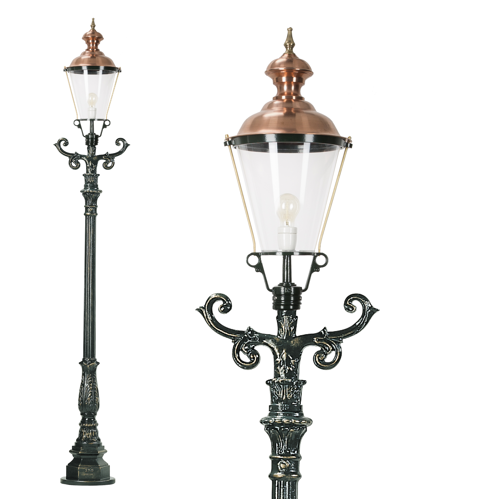 Klassiek landelijke stijlvol en functionele tuinlantaarn van hoogwaardige kwaliteit. De Duisburg is een prachtige lantaarnpaal, een exclusief kwaliteitsproduct gemaakt in Nederland. De lantaarnpaal wordt geleverd met een fraaie ronde lantaarnkap met koperen deksel en heldere beglazing voor een optimale lichtopbrengst. Een plaatje om te zien en een sieraad voor in de tuin of oprijlaan – oprit. Deze prachtige tuinlamp – straatverlichting is zelfs als hij niet brand een lust voor het oog. De Duisburg heeft een totale hoogte van 260 cm.