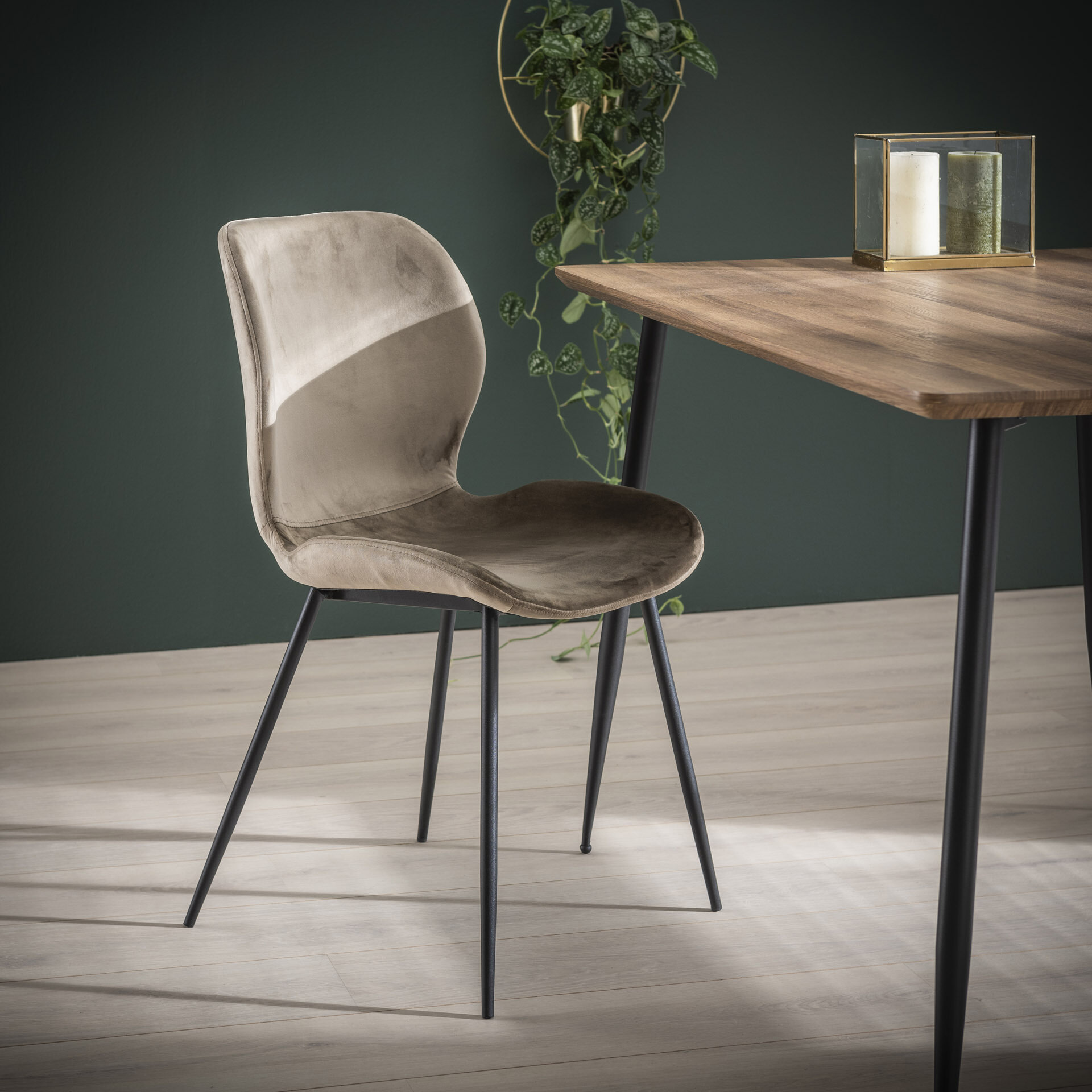 Deze trendy eetkamerstoel is naast comfortabel ook stijlvol. De velvet bekleding geeft de stoel een opvallende look. De zitting is wat gebogen; dit zorgt voor fijn zitcomfort. Het uitlopende stalen onderstel is zwart gepoedercoat en dat geeft het geheel een chique uitstraling. ‘Gael’ staat prachtig in een eigentijds interieur, maar ook in een klassieke sfeer komt deze eetkamerstoel mooi tot zijn recht.