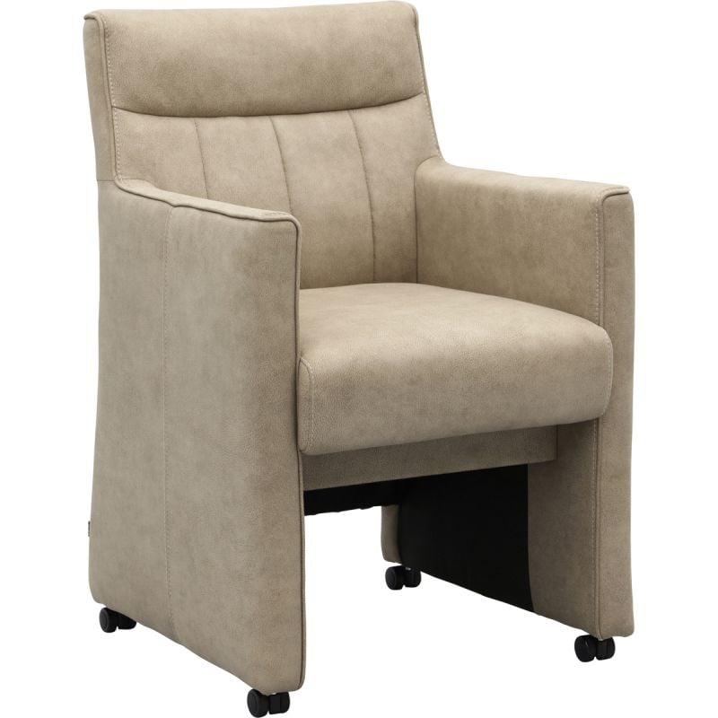 Op eetkamerstoel Wesley wordt dineren een feestje! Met een zithoogte van 50,5 cm, een zitdiepte van 46 cm en de armleuningen, biedt Wesley comfortabele elegantie. De bekleding, microleder Luxor, en de zwarte metalen poot geven de stoel een stoere touch. Kies uit de trendy kleuren antracite, sand en thyme om perfect bij jouw interieur aan te laten sluiten. Wesley is niet alleen mooi, maar ook super praktisch door de zwarte wieltjes en het handvat op de rug. Transformeer jouw eetruimte met eetkamerstoel Wesley. Verkrijgbaar bij onze winkels en in deze webshop!
