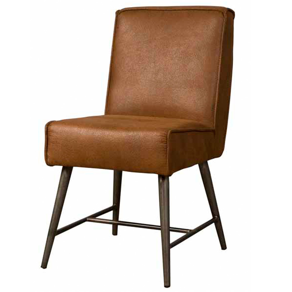 Stoere comfortabele eetkamerstoel met een industriële uitstraling. Bekleed in de mooie en sterke microvezelstof Cherokee.