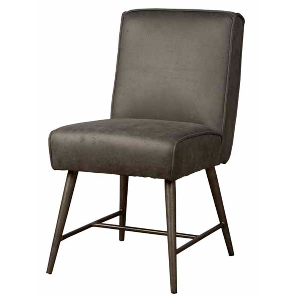 Stoere comfortabele eetkamerstoel met een industriële uitstraling. Bekleed in de mooie en sterke microvezelstof Cherokee.