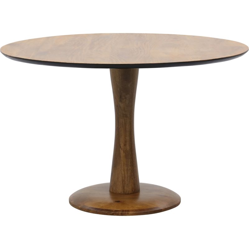 Op zoek naar een nieuwe eettafel? Wellicht is eettafel Valerie dan wel wat je zoekt. Deze ronde eettafel van mangohout is naturel van kleur en is versierd met een prachtige, opvallende nerf. Eettafel Valerie is 120x76x120 cm groot (bxhxd) en zal mooi staan in vrijwel ieder interieur. Zet er een paar stoere eetkamerstoelen omheen voor een industriële of moderne look of schuif een paar velvet exemplaren aan in een zachte tint voor een Scandi look. Wat jouw stijl ook is, jouw eetkamer ziet er met tafel Valerie uit om door een ringetje te halen. Bestel jouw exemplaar online of kom hem eerst bekijken in een van onze winkels!
