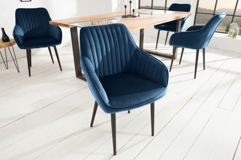 Elegante armleuningstoel TURIJN koningsblauw fluweel met decoratieve stiksels – 39527
