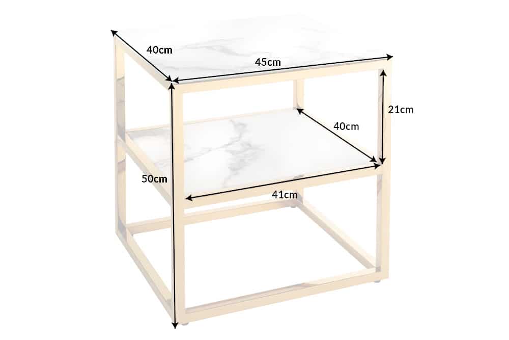 Elegante bijzettafel BOUTIQUE 45cm wit kristalglas met marmeren decor gouden frame nachtkastje – 42173