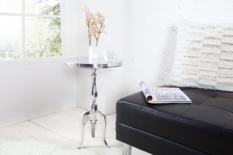 De zilveren bijzettafel fascineert door zijn glanzende oppervlak, wat het meubelstuk tot een echte blikvanger maakt. Als echte blikvanger kunt u met deze tafel uw woonkamer of hal een visueel hoogtepunt geven. Onze interieurtip: Combineer de bijzettafel met andere zilveren meubelstukken en woonaccessoires en creëer een harmonieus inrichtingsconcept.