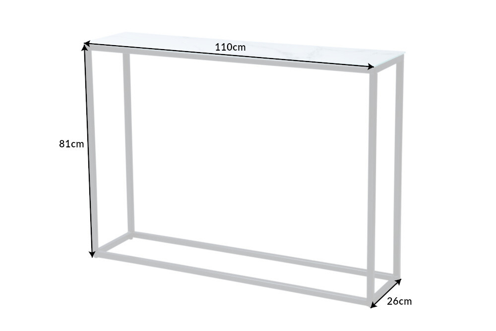 Elegante consoletafel BOUTIQUE 110 cm wit kristalglas met marmeren decor zwart frame – 42170