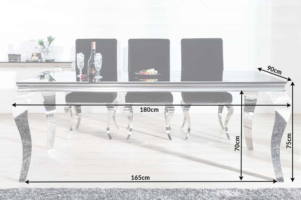 Elegante design eettafel MODERN BAROK 180cm zwart roestvrijstalen opaalglas tafelblad – 36544