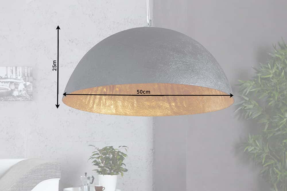 Geef je eettafel of woonkamer een bijzonder warme en gezellige sfeer met de design hanglamp GLOW. De grote kap van deze prachtige lamp is halfrond en gemaakt van glasvezel en glasvezelmateriaal en straalt dankzij de reflector aan de binnenkant in antiek goud indirect een op zonlicht lijkend licht de kamer in.