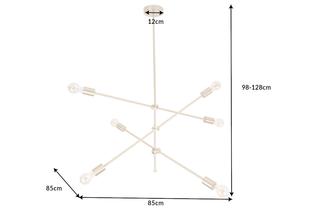 Zet een stralend accent in uw sfeer! Onze VARIATION lamp maakt op het eerste gezicht indruk met zijn buitengewone design, dat moderne designelementen en tijdloze elegantie vakkundig combineert. In een schijnbaar willekeurige opstelling werden de ophangingen asymmetrisch aan een lange metalen staaf bevestigd. De zes lampen, die op het scharnier draaibaar zijn, schijnen alle kanten op en zien eruit als fonkelende sterren.