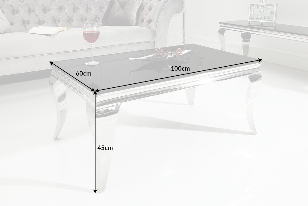 Elegante salontafel MODERN BAROK 100cm zilver met zwart opaal glas – 37352