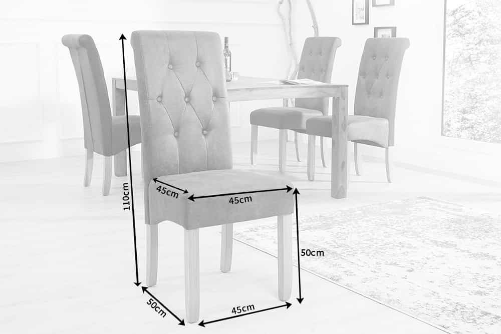 Elegante stoel CASA vintage grijs met decoratieve knopen massief houten poten – 37293
