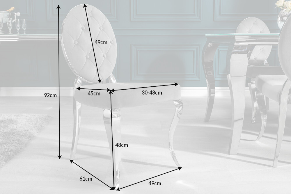 Elegante stoel MODERN BAROK edel grijs fluweel met knopen roestvrijstalen poten – 38342