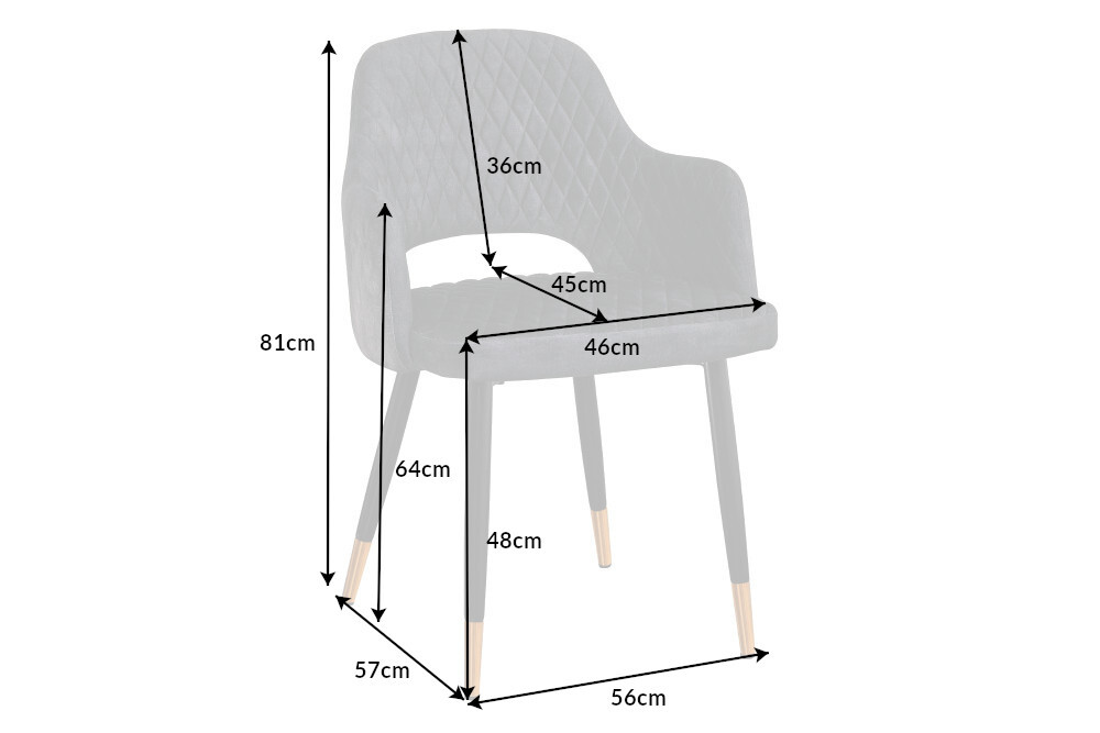 Elegante stoel PARIS grijs fluweel decoratief quilten en gouden voetdoppen – 40571